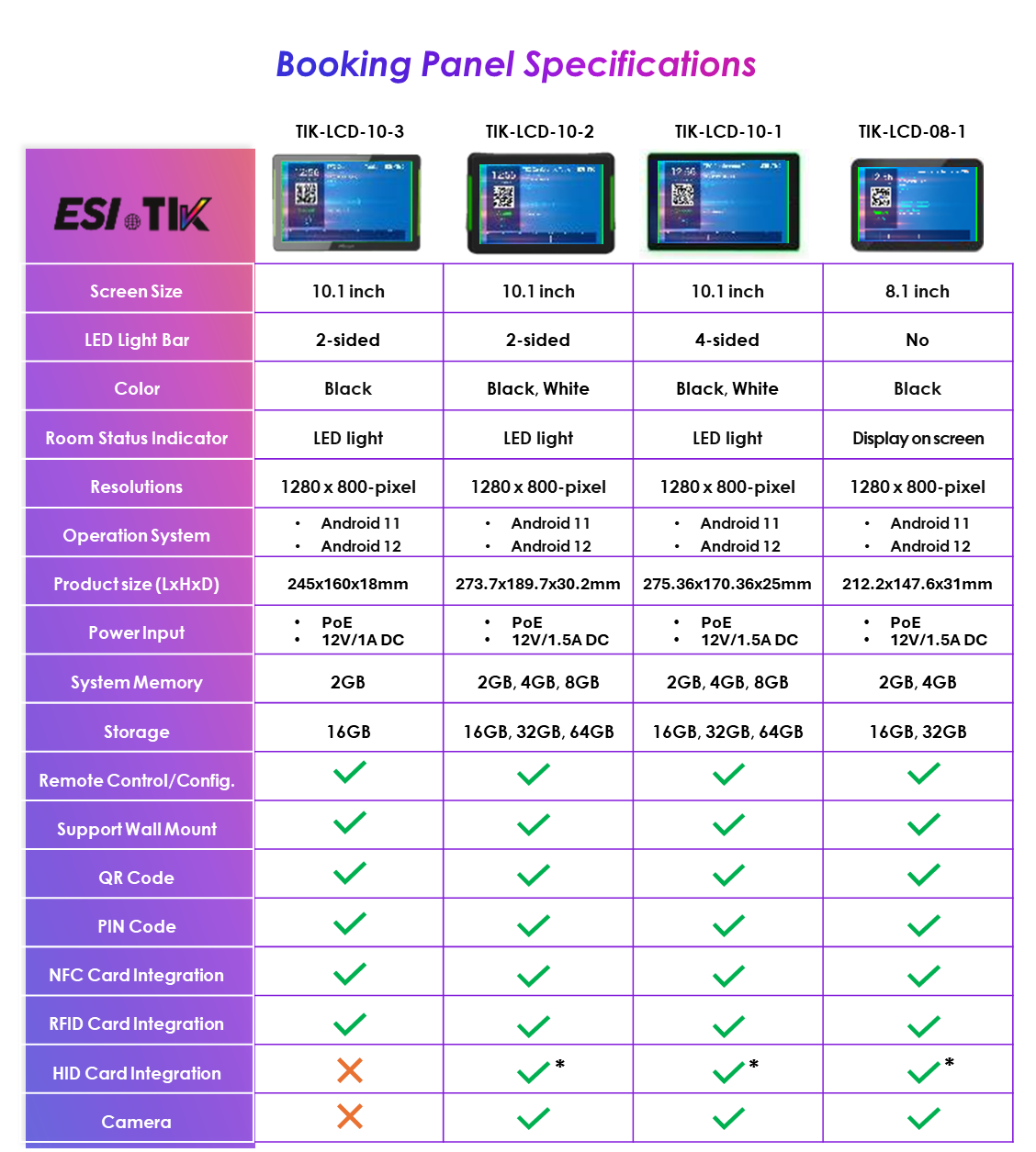 Booking Panel Specifications