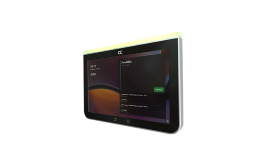 The AudioCodes RX-PANEL is a sleek, dedicated touch-screen panel for meeting room scheduling. Mounted outside conference rooms, it provides real-time visibility into room availability and facilitates instant booking. The RX-PANEL integrates seamlessly with Microsoft Teams and Exchange calendars, helping organizations optimize room utilization and streamline scheduling processes.