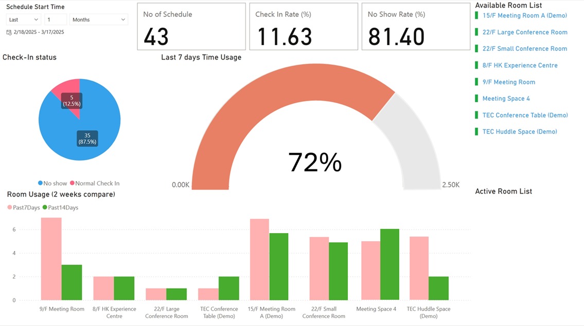 Access detailed insights into room utilization, including occupancy rates, no-show statistics, and booking trends. Identify underutilized spaces to optimize resource allocation and reduce costs.