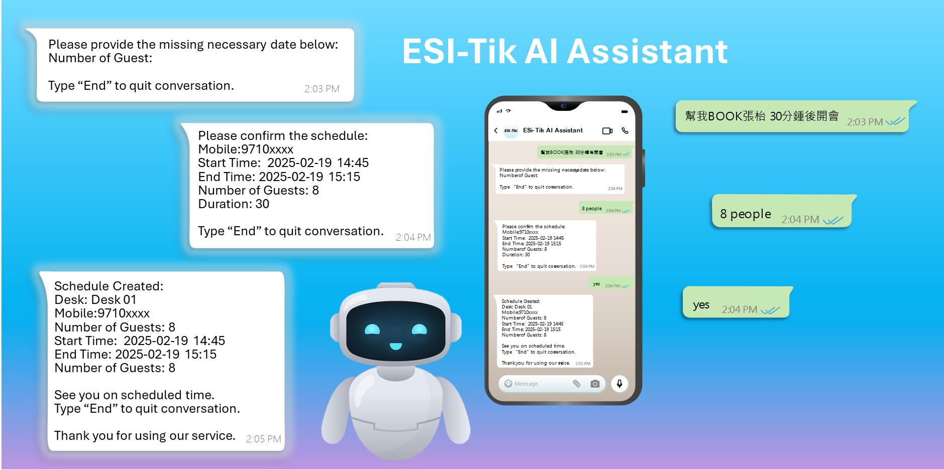 The AI Agent provides real-time updates on the availability of meeting rooms and resources, ensuring you always have the most up-to-date information at your fingertips.