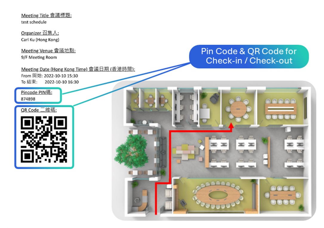 Provides visitors with a map to navigate to the meeting zone after scanning their QR code at the entry point.