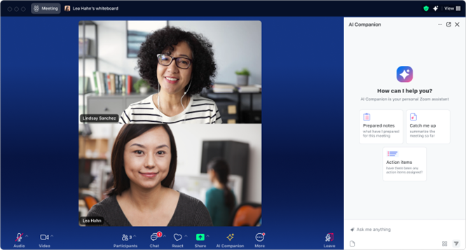 In the near future, Ask AI Companion will be a new addition to the AI Companion toolkit. It will gather, synthesize, and disseminate critical information from various sources across the Zoom platform and select third-party applications. Moreover, Ask AI Companion will undertake routine tasks on your behalf, such as preparing meeting materials by compiling relevant content like meeting summaries and chat threads, drafting agendas, and generating brainstormed ideas. Ask AI Companion will be seamlessly integrated throughout Zoom Workplace, ensuring your AI-powered digital assistant is readily available to enhance your performance and streamline your schedule.